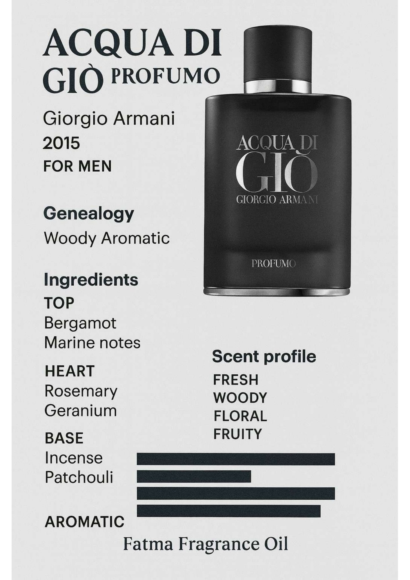 ACQUA DI GIO by GIORGIO ARMANI — a premium fragrance oil with a refined character. Designed for lasting performance and versatile wear, it blends classic elements with modern depth.