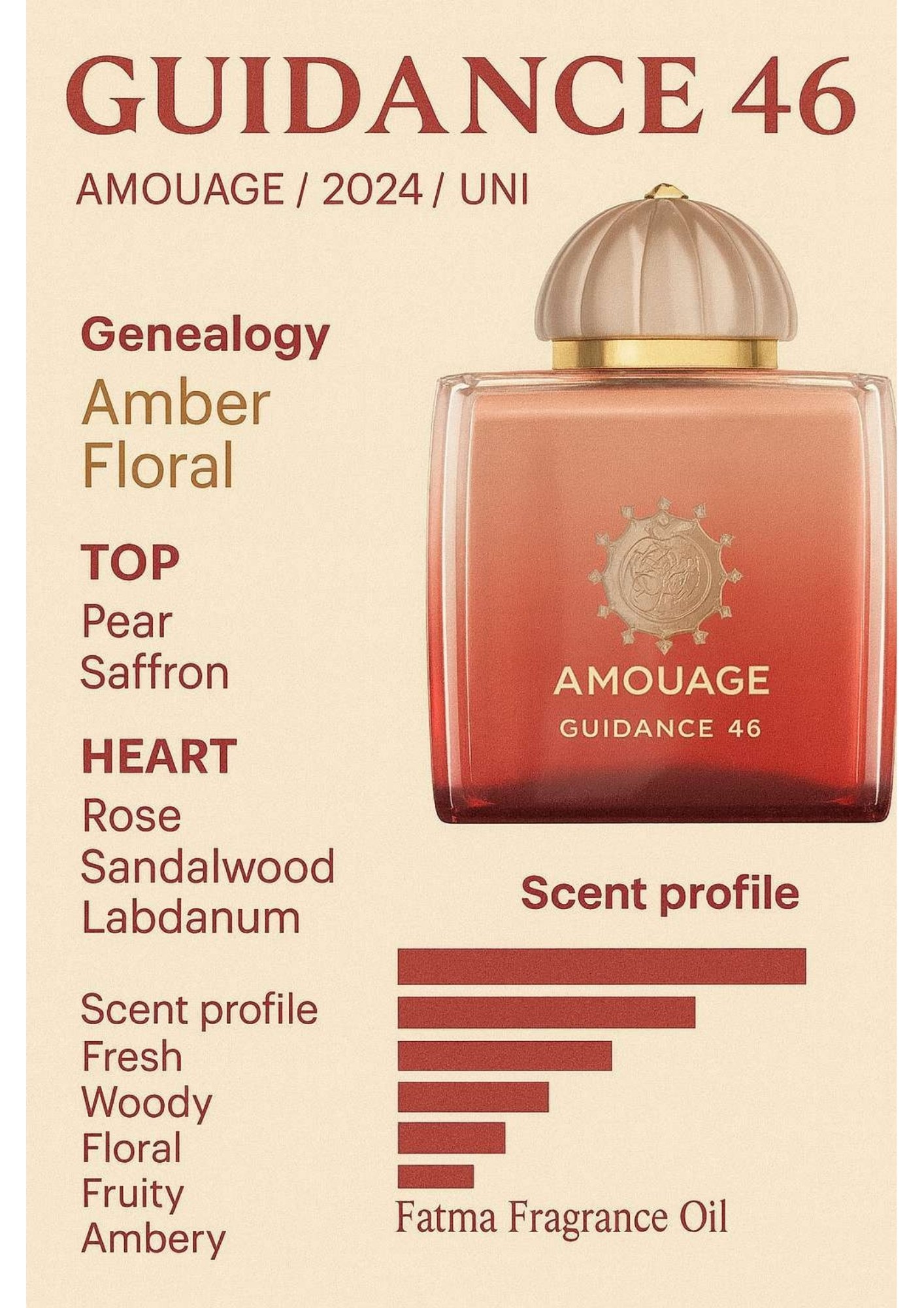 This fragrance oil is inspired by the luxurious and intensified Guidance 46 scent profile by Amouage. It offers a richer, more concentrated aroma that feels bold, elegant, and deeply expressive. Crafted by Fatma Perfumes, this fragrance oil is created for those who appreciate powerful, artistic scents with exceptional depth and presence.