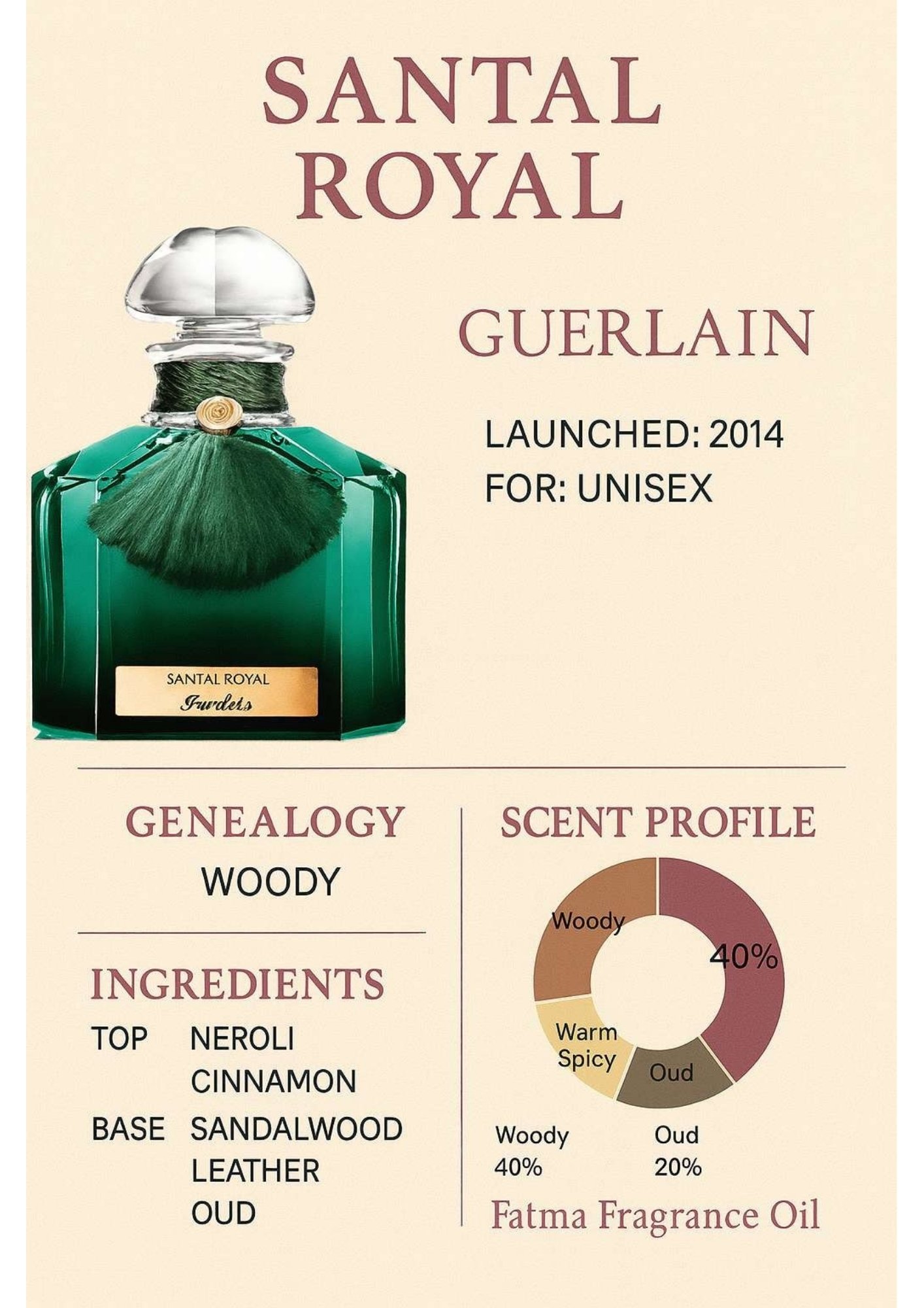 SANTAL ROYAL by GUERLAIN — a premium fragrance oil with a refined character. Designed for lasting performance and versatile wear, it blends classic elements with modern depth.
